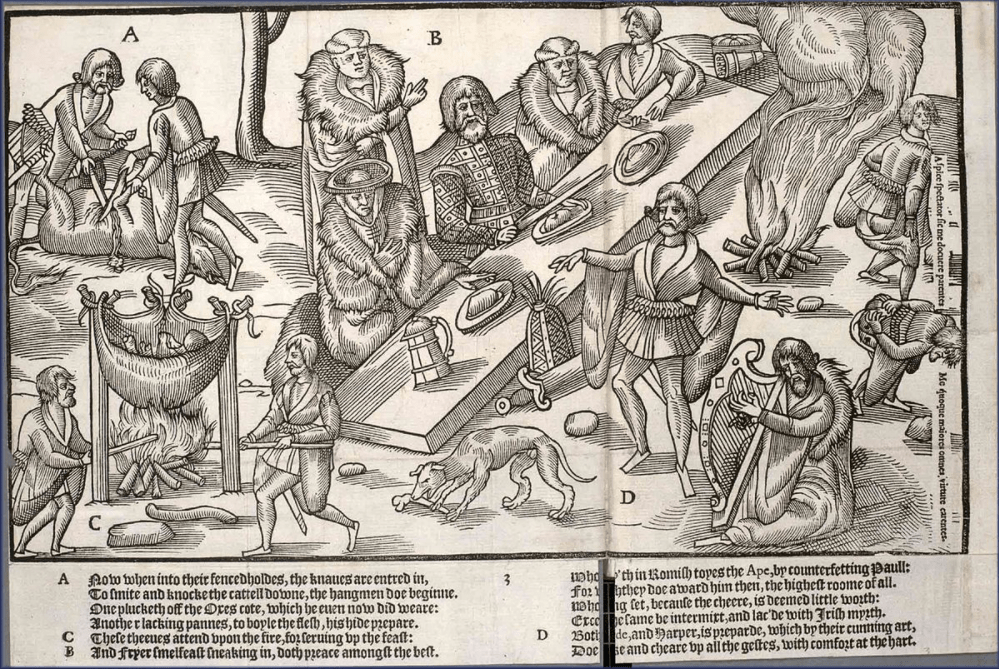 Speech and performance could assure poetic advancement, but might also make or break a person’s ‘honour’, in this hierarchical, close-knit society. Speech was a high stakes activity and unchecked speech was especially feared. Tensions between the filidh and the baird were, therefore, partly symptomatic of a broader concern about who should speak publicly and in what circumstances. And so there was a jaundiced view of ‘others’ outside the poetic profession who engaged in unsanctioned public satirical speech (often referred to as cáinte). ‘Praise poetry’ and ‘satire’ were structured mediums of speech through which the poets exercised their authority and craft, as well as ensuring legal and political accountability.